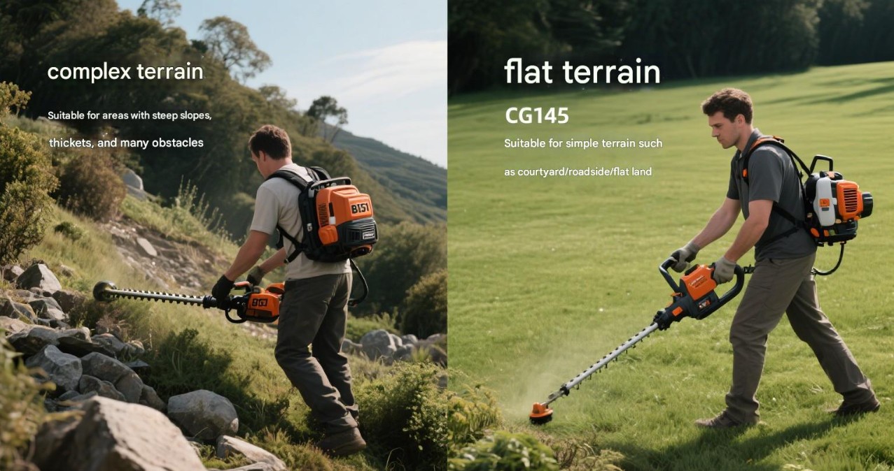 Operace s plochým terénem: Při sekání na plochém terénu si můžete vybrat kapesní sekačku, jako je kartáč CG145 a štětce CG430B. Tyto modely se snadno ovládají a mohou efektivně dokončit úkoly sečení na plochém terénu.