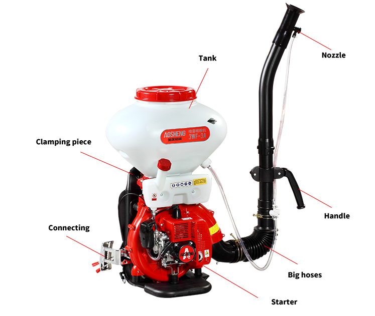 Domů / Produkty / Zahradní nářadí s benzínovým motorem / Mlha Duster / 3WF-3/A/B/C zádový prachový mlžný prach