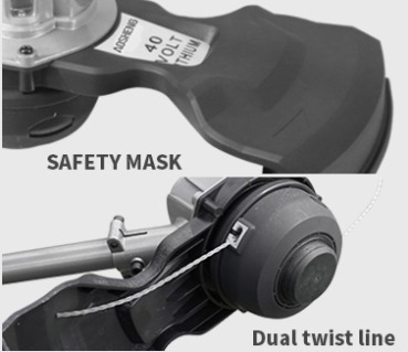 | 04Bezpečnostní maska a duální linka Twist Ochranný kryt účinně zabraňuje zranění během používání. Dodává zvracení 0,09 palce (2,3 mm) v průměru |